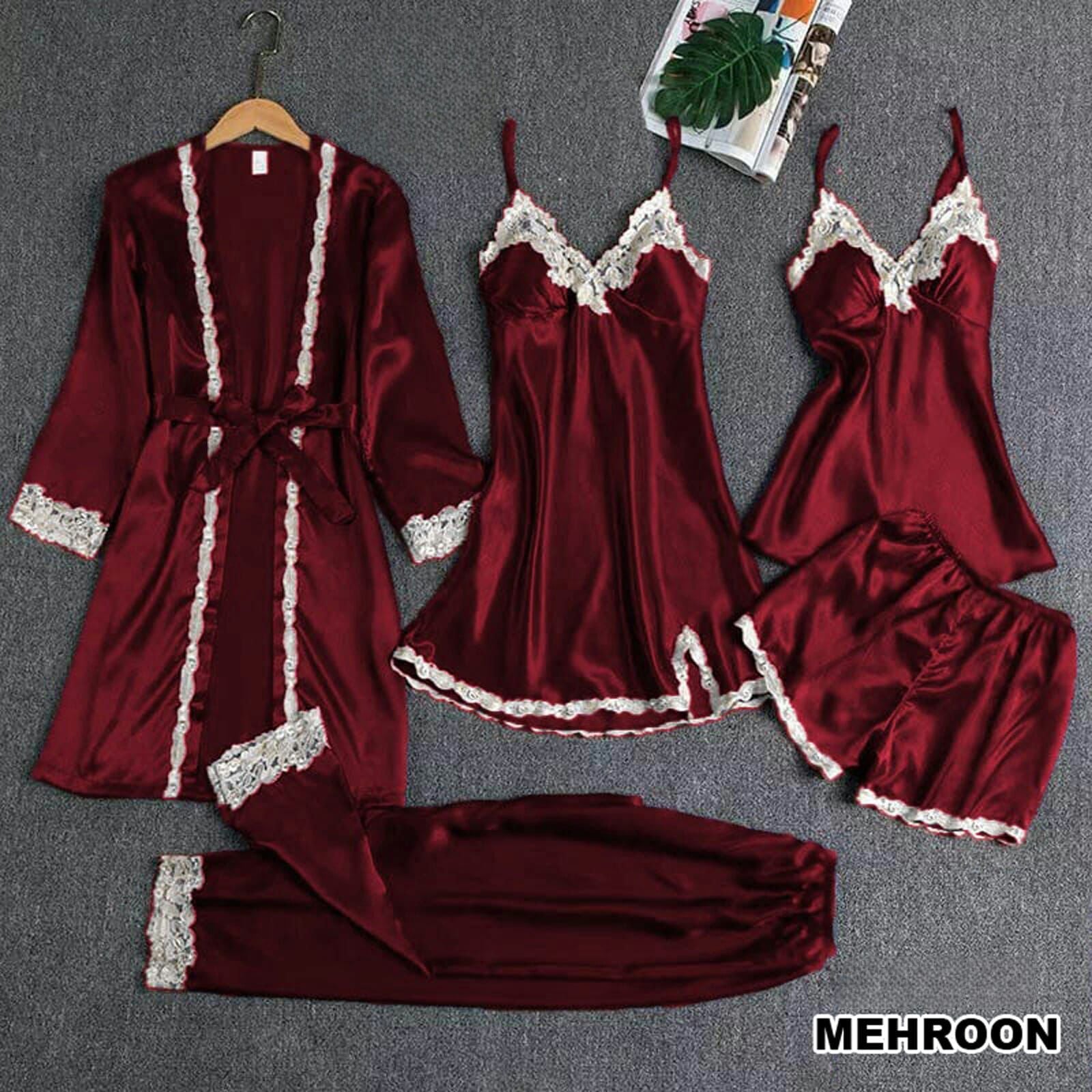 5 PEACE NIGHT SUIT INCLUDES OPEN GOWN, 2 DIFFERENT INNERS, SHORTS AND TROUSER 🥰